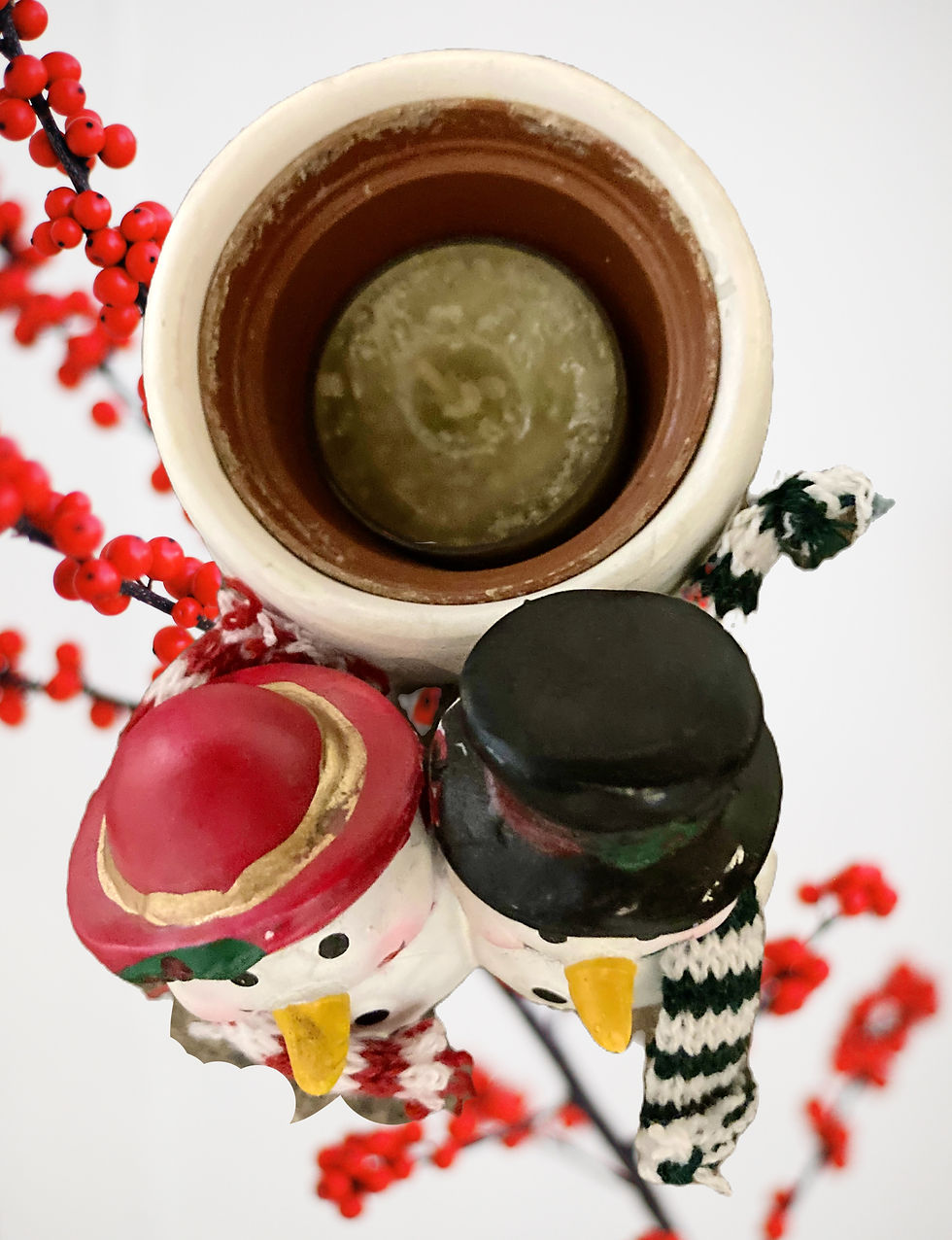 5” x 3” holiday decoration, burlap and pinecone birdhouse